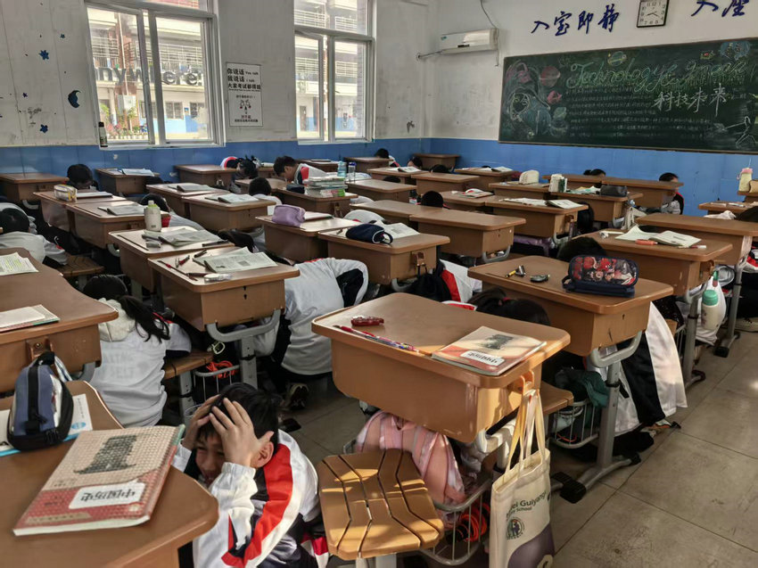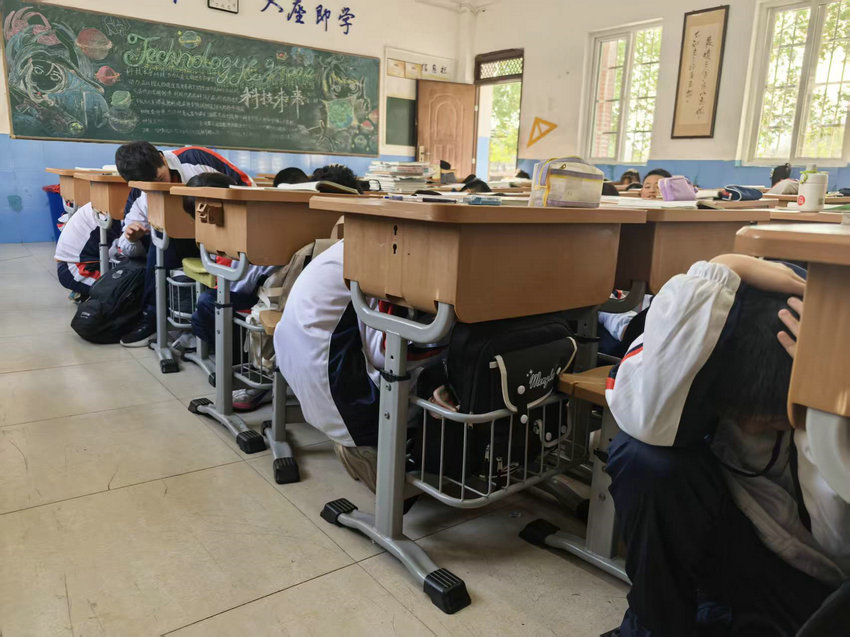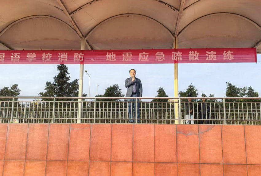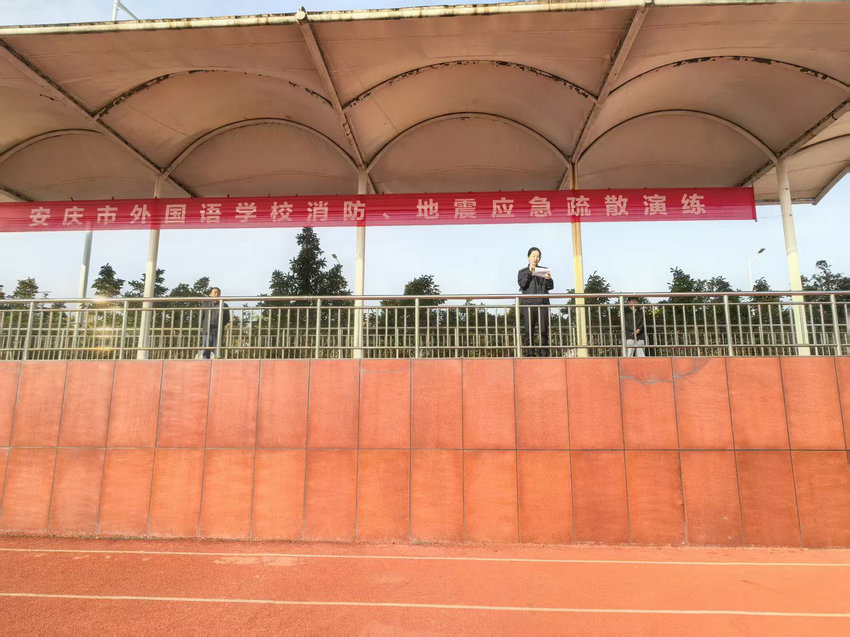 2025年11月11日上午8点20分,随着尖锐的警报声在校园响起,安庆市外国语学校2025年11.9消防、地震应急疏散演练活动开始了。