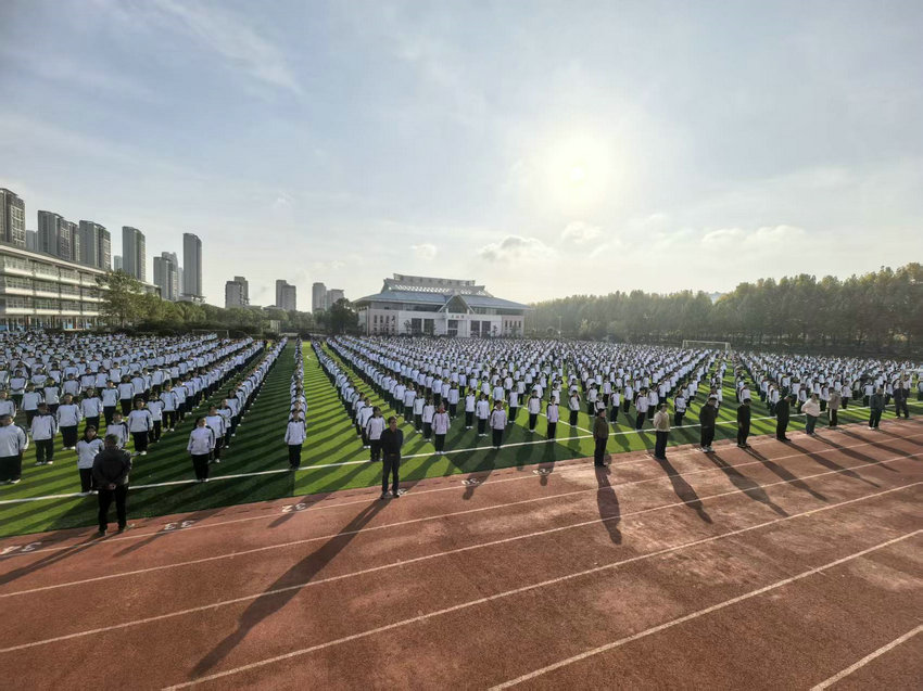 演练预设在上课期间,教学楼内正在上课的全体师生需紧急疏散,撤至安全地带。警报拉响后,各班教师立即组织学生快速、有序撤离教室,从指定线路疏散到田径运动场。在应急疏散演练工作小组的有序组织下,3000多名师生分别从各教学楼迅速撤出,4分钟内在田径运动场集合完毕。