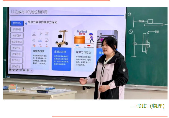 比赛过程中,青年教师们围绕 “教材分析、学情分析、教学目标、教学重难点、教法学法、教学过程、板书设计、教学反思” 等内容,对各自课题进行深入阐述。