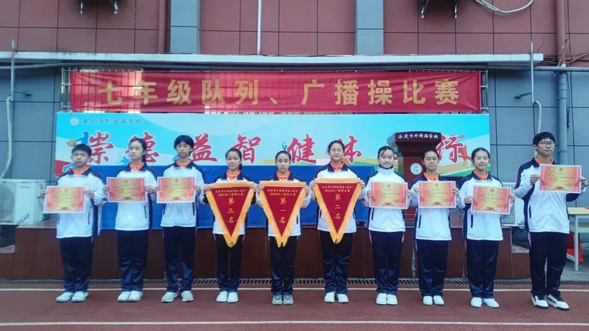 为深入推进阳光体育运动,丰富校园文化生活,增强学生身体素质,培养集体荣誉感,我校隆重举行了七年级广播操比赛。