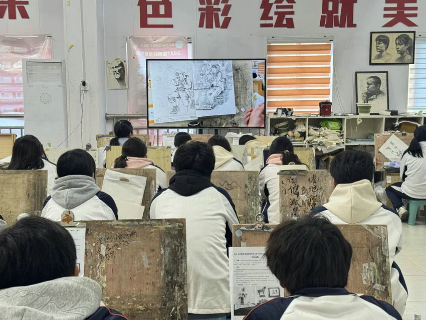 为助力高三美术生全力备战2026年美术高考,精准提升绘画专业硬实力,深化对艺考命题趋势与应试逻辑的认知,11月10日,我校汇杰美术特邀请全国知名速写名师王彬,为全体高三美术生带来为期四天的沉浸式教学指导与应试专项集训。