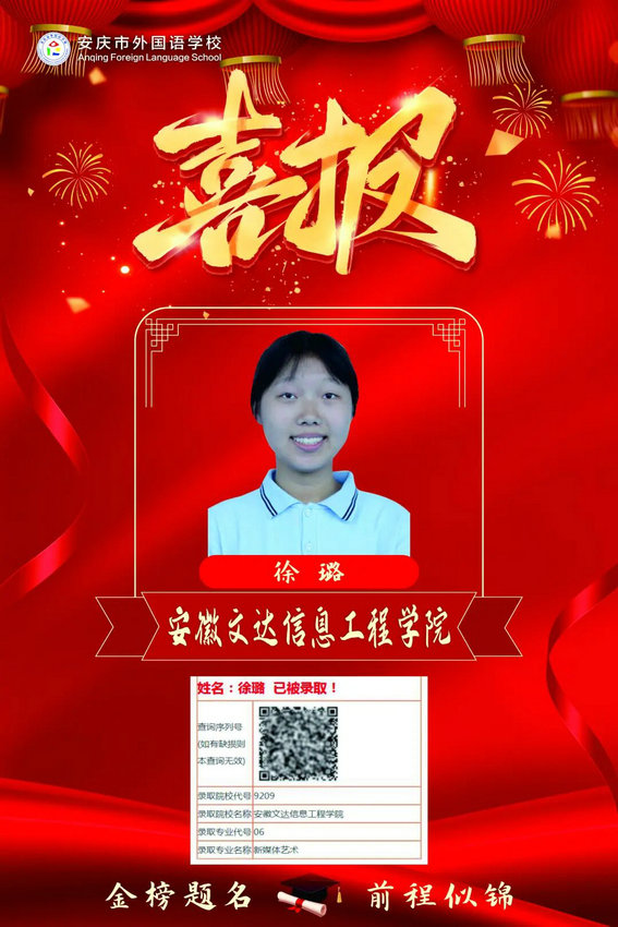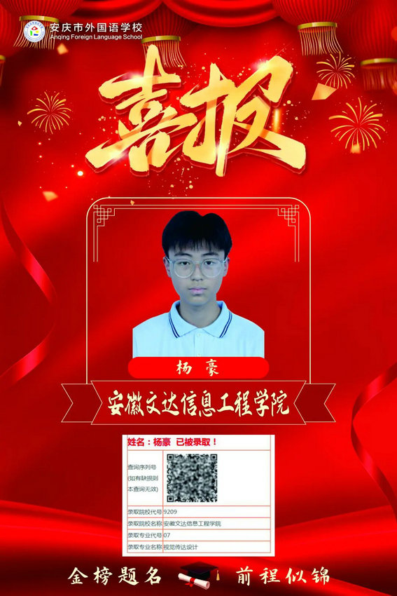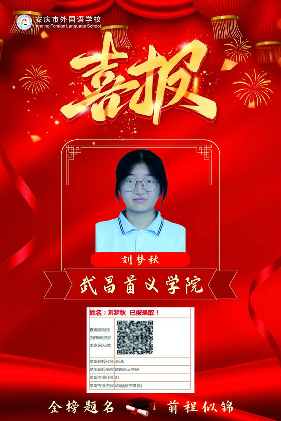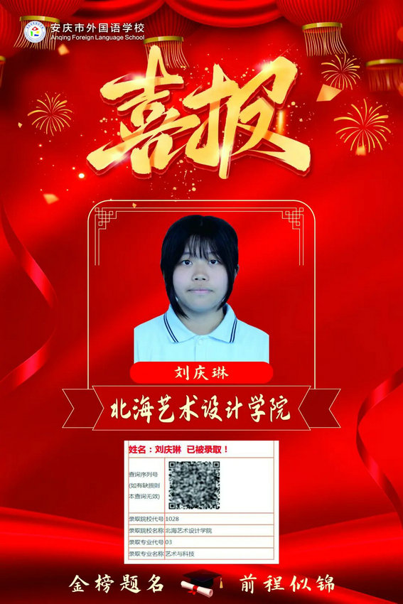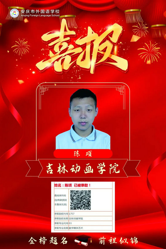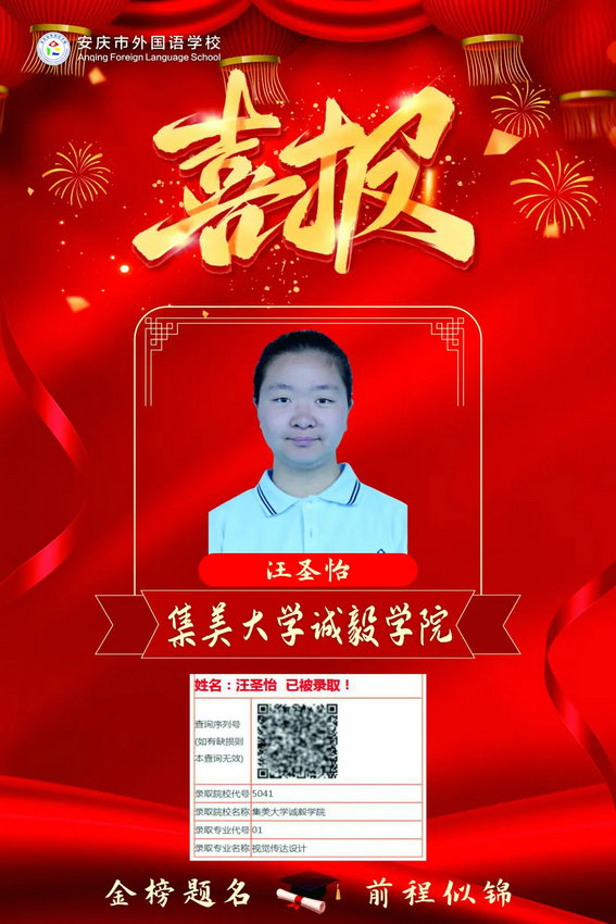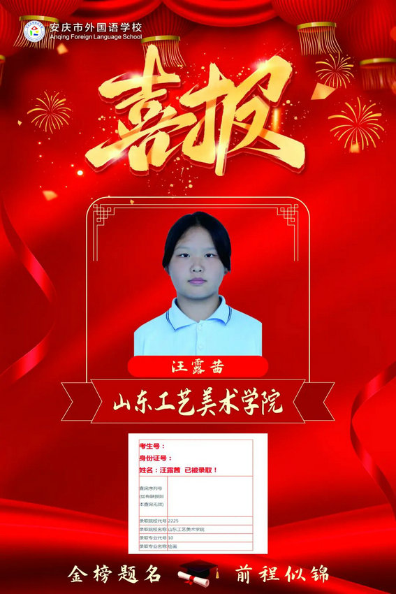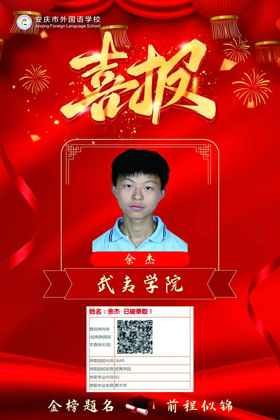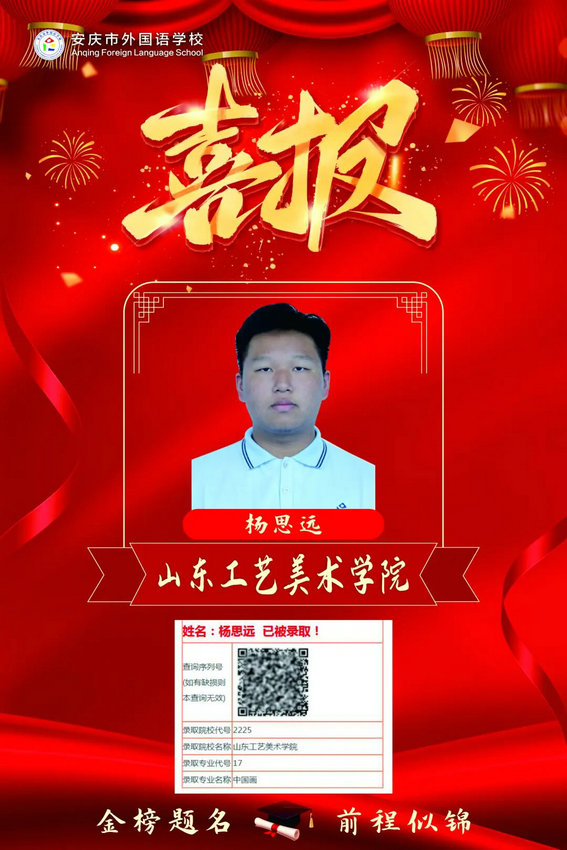 我校高中部汇杰美术班2025年高考成绩喜人,专业课达线率96%,本科录取率86%,特向成功升入大学的同学表示祝贺,向辛勤付出的专业课和文化课教师表示感谢! (以下为部分录取喜报,排名不分先后)
