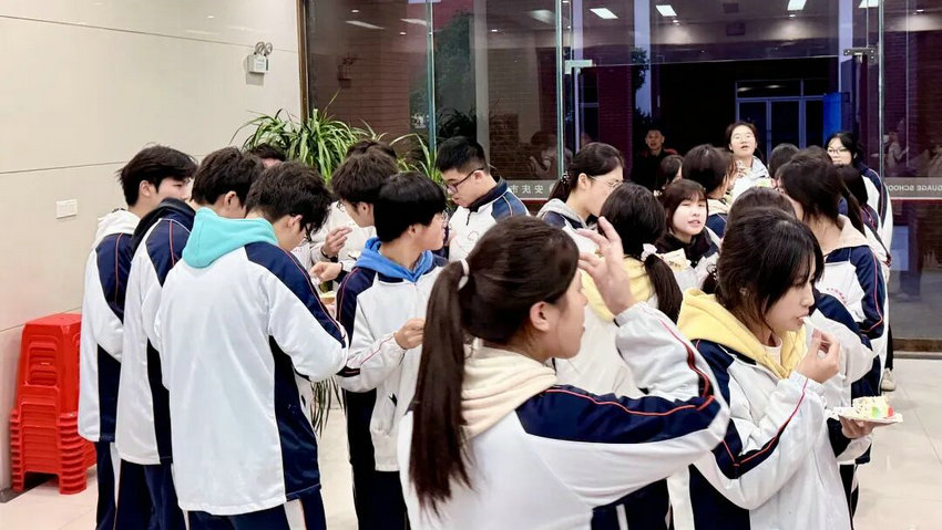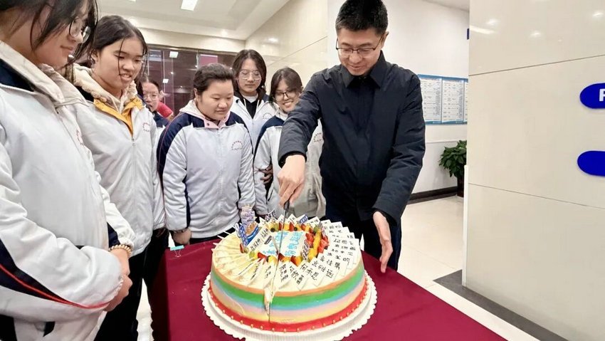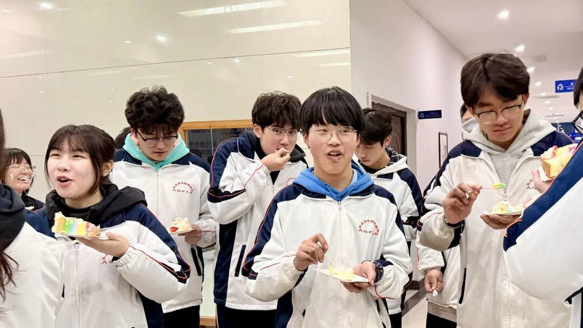 分享蛋糕的环节,一阵阵欢笑在大厅里回荡。香甜的滋味里,是师生间的温情、同窗间的共勉,这份温暖不仅舒缓了备考的紧张,更在彼此的陪伴中凝聚成一股持久的力量,支撑着每一位美术生在最后的冲刺征程中奋勇前行。