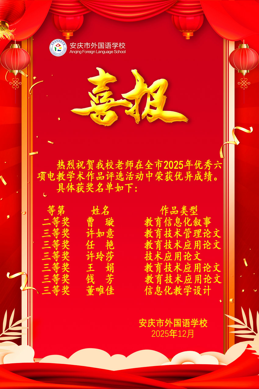 全市2025年优秀六项电教学术作品评选获奖喜报