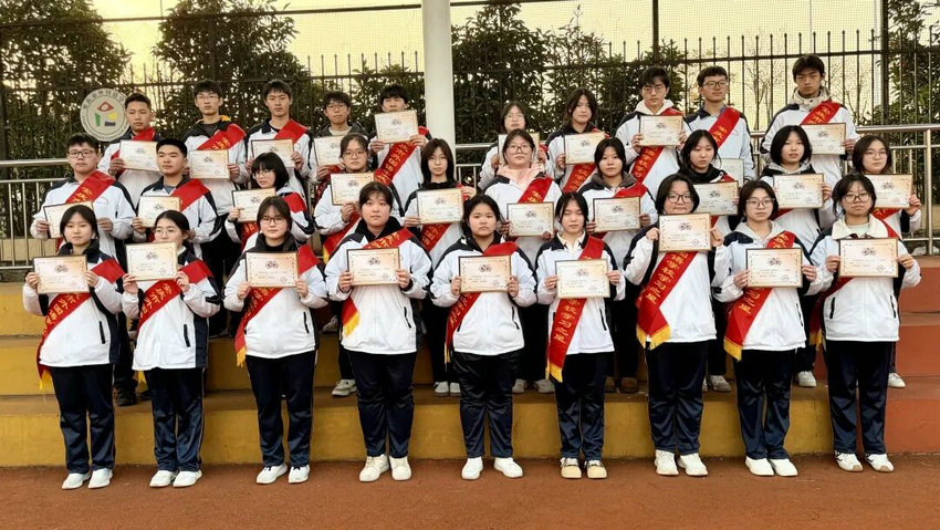 大会第三项议程,对“数学揭榜英雄”活动获奖的同学进行表彰。数学是理科学习的基础,也是培养逻辑思维的重要学科。为激发同学们攻克数学难题的兴趣和勇气,高中部数学组开展了“揭榜英雄”系列活动。同学们主动挑战数学难题,凭借敏锐的思维和坚韧的毅力“揭榜解题”,展现出扎实的数学功底和勇于探索的精神。