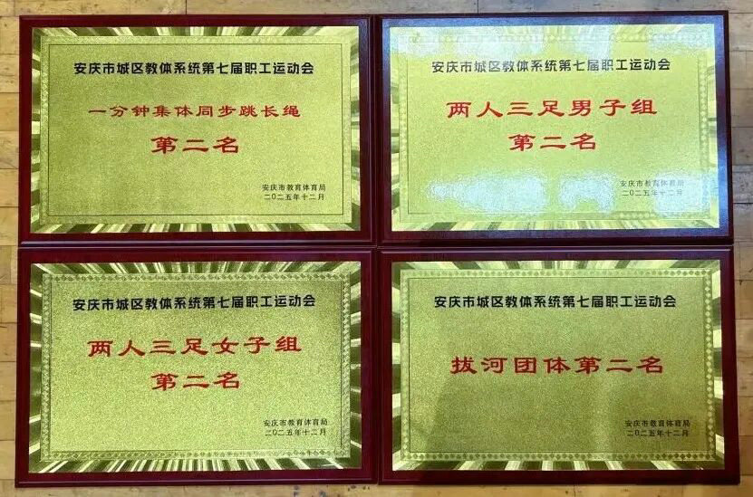 12月13日,安庆市城区教体系统第七届职工运动会在市体育馆举行。安庆市外国语学校高度重视此次盛会,精心组建拔河、徒步、两人三足、套圈趣味游戏、跳绳5支代表队,我校教师代表队意气风发,在赛场上挥洒汗水、奋勇拼搏,最终斩获四块团体二等奖的佳绩!