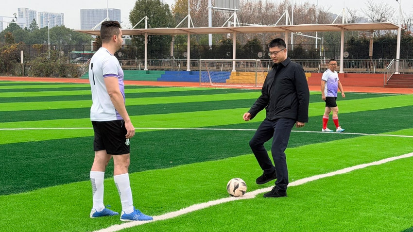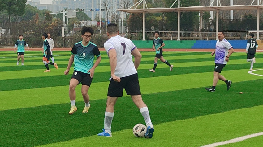 球场上,没有师生的身份界限,只有并肩奔跑的队友和全力以赴的对手。一次精准的长传、一次精彩的扑救、一次惊险的射门,都引来场边观众的阵阵欢呼。微风轻抚着球员们挥洒的汗水,绿茵场见证着师生之间的互动与情谊,这场比赛早已超越胜负,成为一次珍贵的校园交流。