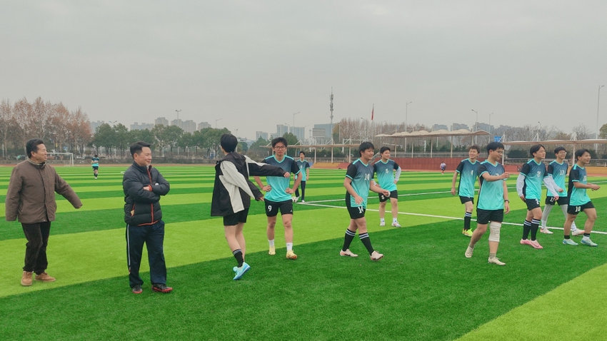 当新年的脚步悄然临近,当师生的热情碰撞出火花,我校这场特别的迎新足球联谊赛,成为了校园里最亮眼的风景。12 月 22 日上午,由副校长刘兵、芦丹、校长助理徐最太和高中部部分老师组成的教师联队与高一高二足球社学子的对决正式拉开帷幕,一场跨越师生身份的绿茵较量,为校园迎新季增添了别样的活力。