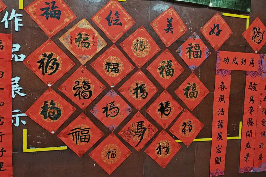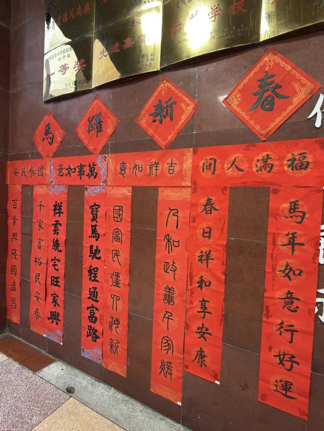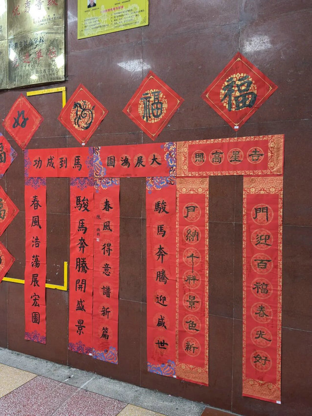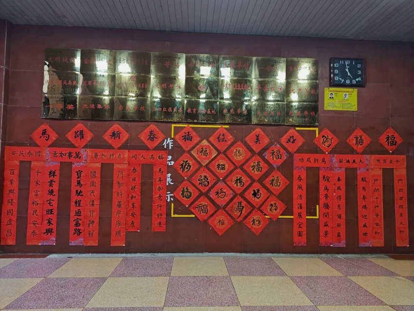 本次活动作品已展于门厅,粘贴到班级门口。设置最佳设计、创新、效果奖各有归属。活动既展书法魅力,又深化学生对传统文化的认同,为校园添新春暖意。