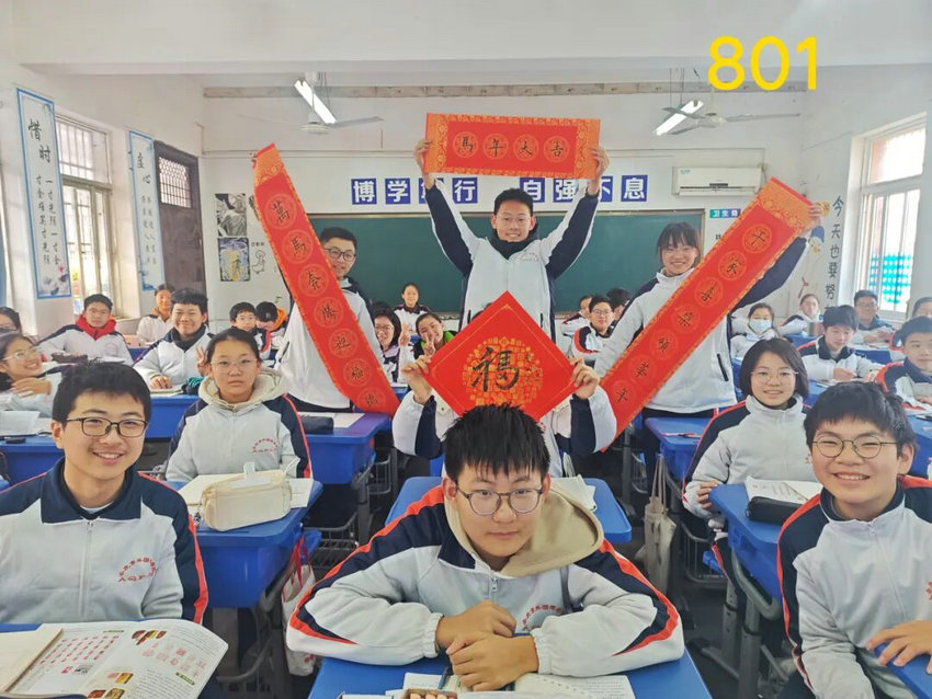 为迎马年新春,我校七、八年级开展“马跃新春,福绘美好”美术活动,学生以班级为单位创作“画马添福”“马年对联”作品,融书法与传统元素,记录创作过程并提交作品。