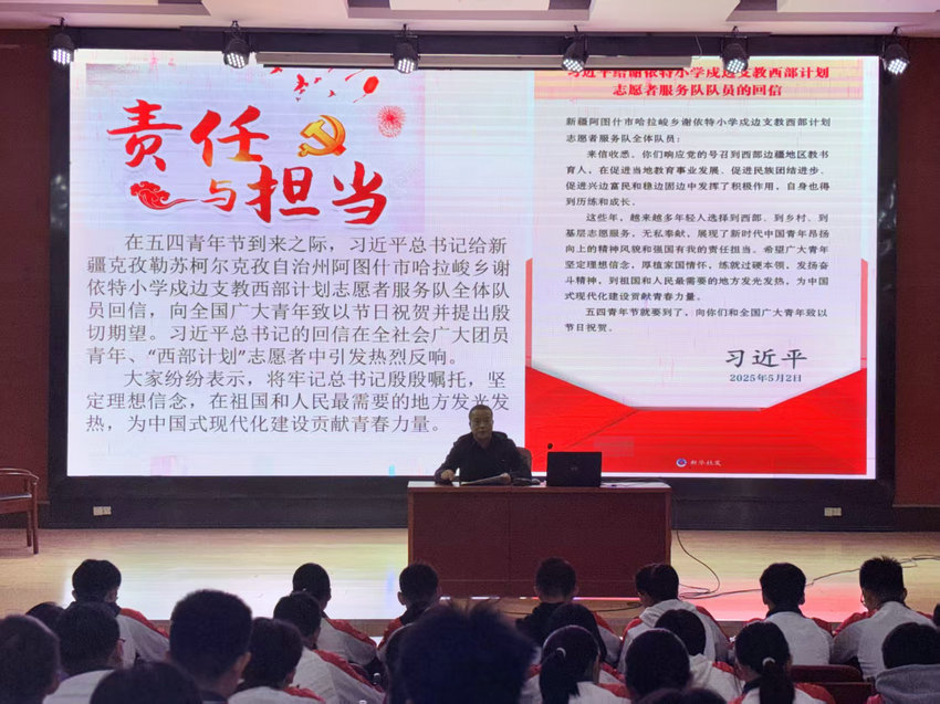 本次培训由团委书记金根生主持,党员教师马伟老师主讲。马老师紧紧围绕共青团的历史、性质、任务以及团员的权利与义务等内容展开详细讲解。团委金书记强调,共青团作为党的助手和后备军,要坚定理想信念,增强团员意识,积极投身社会实践,为实现中华民族伟大复兴的中国梦贡献青春力量。