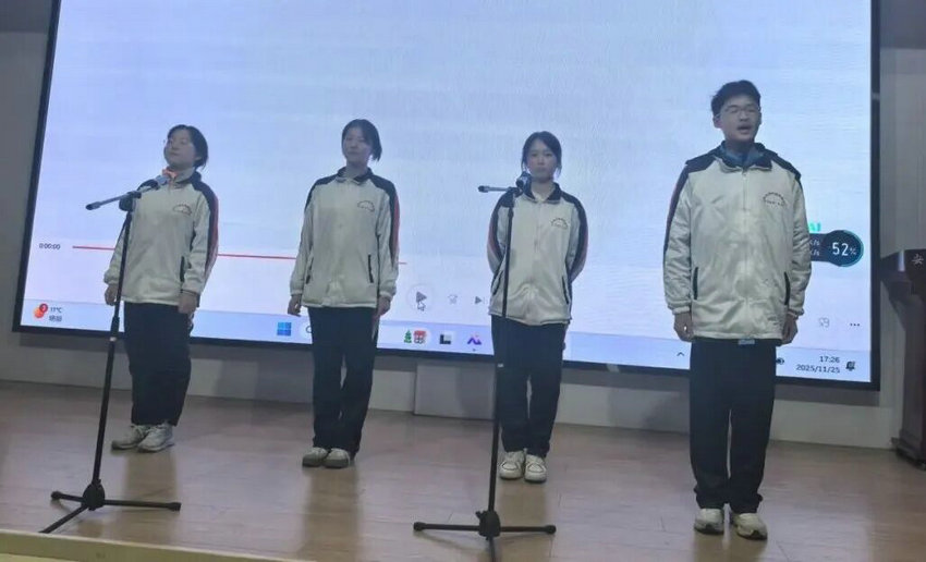 赛场上,同学们或慷慨激昂,以铿锵的语调诵读爱国诗篇;或婉约低吟,将细腻情思融入抒情诗歌,传递着对生活、对梦想、对青春的赤诚热爱,他们以最饱满的热情、最真挚的情感和精湛的朗诵技巧,为现场观众呈现了一场无与伦比的声音盛宴。每一次朗诵结束,现场都会爆发出阵阵热烈的掌声,那是对同学们精彩表现的由衷赞美和肯定。