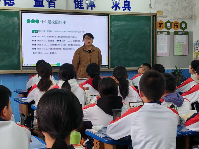 班会课上,班主任结合初中学生年龄特点,通过案例分析、视频观看等多样形式,让“校园欺凌”不再是抽象概念,同时直观感受欺凌对他人身心的伤害。有的班级则聚焦“网络欺凌”,剖析恶意P图、匿名诋毁等行为的危害,引导学生规范网络言行。有的班级则结合学业压力讨论“冷暴力”的表现,教会学生用理性沟通化解矛盾。