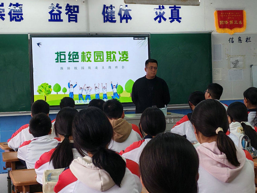 为进一步树立学生“拒绝欺凌、守护同伴”的意识,预防校园欺凌事件发生,保障青少年身心健康、快乐成长。2025年10月27日,初中部东区组织各班级开展校园防欺凌主题班会,