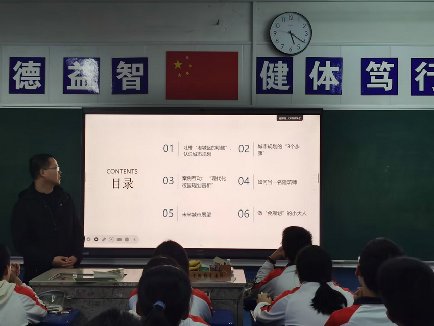 互动环节,同学们踊跃发言,积极探索城市规划与所学学科关联,畅谈未来城市发展方向。刘工程师在班会总结中希望每位同学将规划思维迁移到学习中,做好自己的“建筑师”,长大后成为社会栋梁之才。此次班会既拓宽学生视野、提高了学习的积极性,又为其 2026 年中考备考与成长注入 “规划力”。
