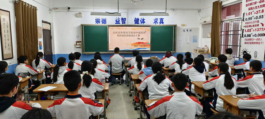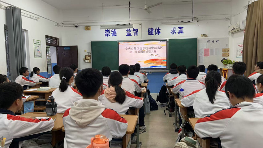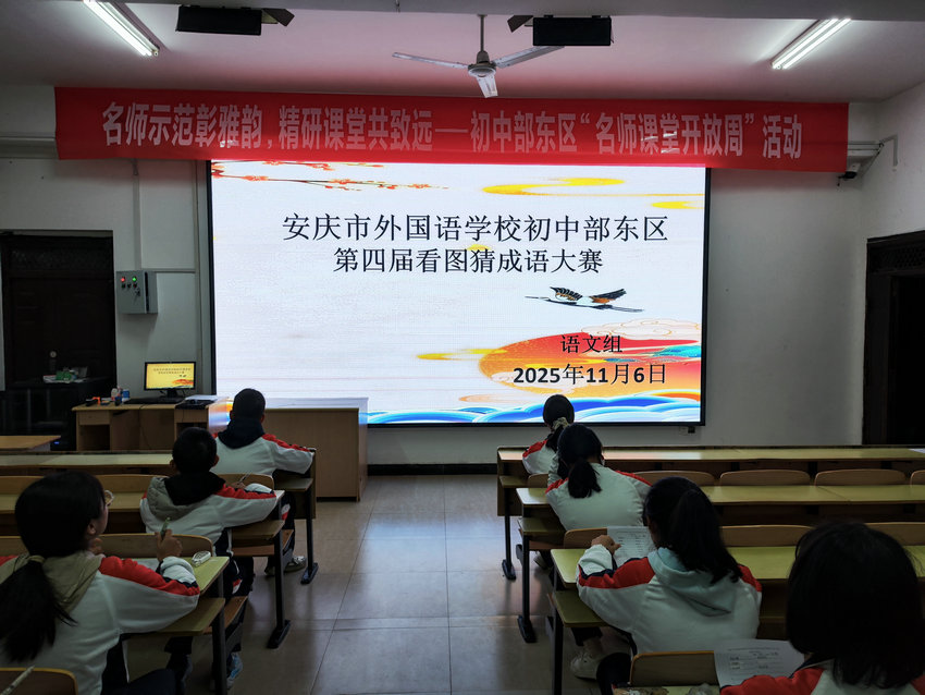 为营造勤学善思的校园氛围,夯实学生语文基础,传承中华传统文化,今日,我校初中部语文组精心策划的第四届“看图猜成语”趣味比赛在合班教室顺利举行。七至九年级共28个班级全体学生积极参与,以趣味比拼感受成语魅力。