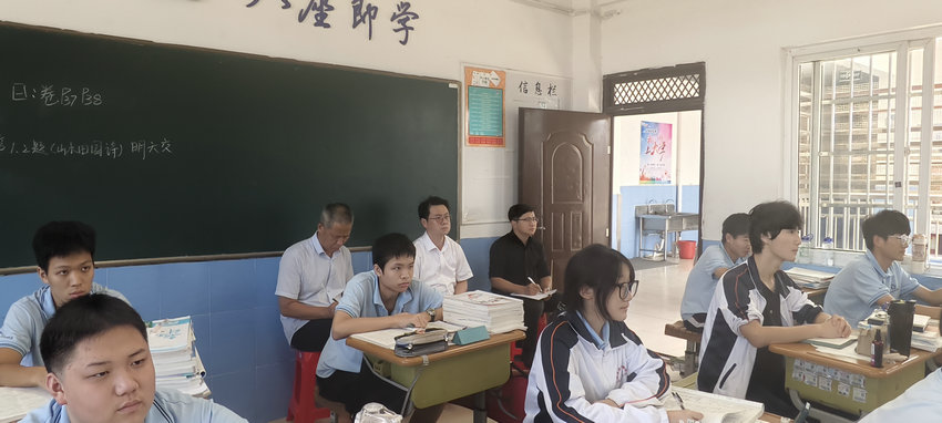 9 月 22 日上午最后一节课,307 班的地理课堂氛围热烈。肖清克校长、徐最太校助,高中部江生友主任、徐海宏主任、朱炎炎主任,国际部王银钗主任以及地理教研组长江正应老师一同走入教室,开展推门听课活动,聆听许冬冬老师讲授“地方时的计算”。