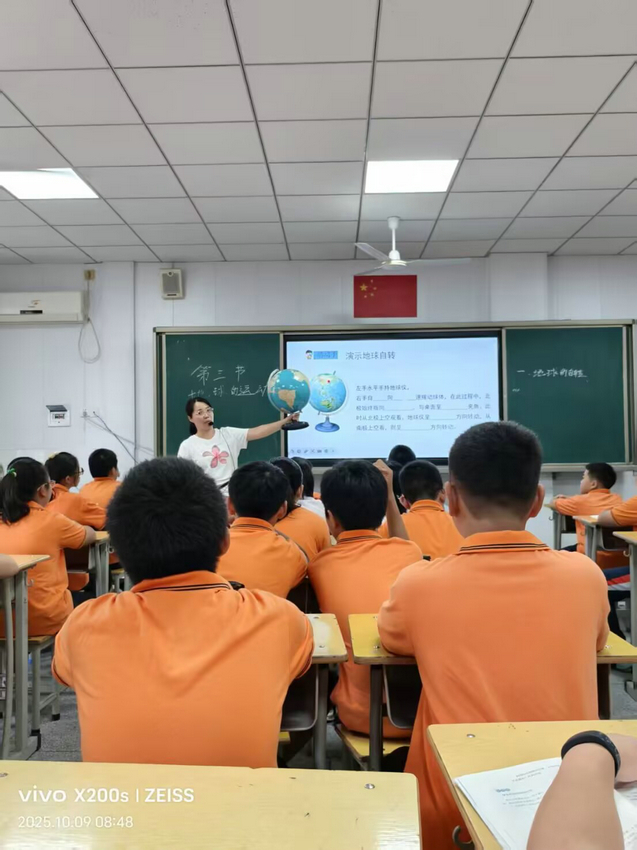 2025年10月9日周四上午第二节课,在西区教研活动室,地生组周娇娣老师于704班开设了一节两区公开课,初中部西区全体地生组教师和东区的地理老师参加,孙艺军主任一起参与听课。