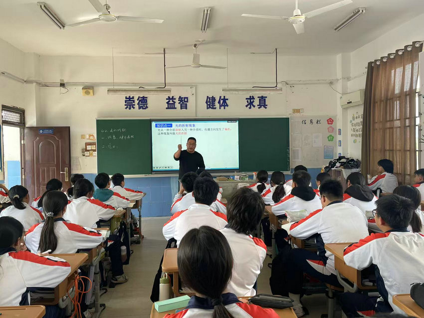 11月12日下午,我校初中部物理教师吴伟执教的《光的折射》公开课在805班教室举行。课堂中,吴老师立足课标,以生活现象导入,通过概念讲解、实验演示与课堂互动,清晰呈现光的折射规律,教学环节紧凑,充分调动学生的探究积极性。
