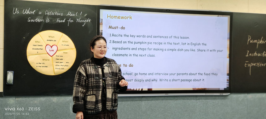 梁红玉老师的课堂以“生活化”为核心,用贴近学生日常的朋友圈动态与家务场景图片自然导入,瞬间拉近了文本与学生的距离。教学过程中,她循循善诱、层层递进,通过精准设问引导学生深度解读文本,最后以一首经典古诗进行情感升华,将文本主题与传统文化巧妙融合,结尾再以生活化图片呼应开篇,形成完整闭环。课堂上,梁老师的有效指导贯穿始终,创意十足的板书设计清晰呈现教学脉络,而独具巧思的自检环节更让学生在自主反思中巩固所学,充分彰显了以学生为中心的教学理念。