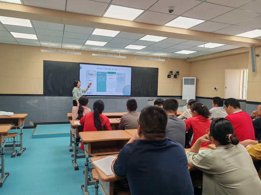 本次学习活动聚焦班主任日常工作中的高频需求,结合班主任工作场景,围绕智能工具的操作逻辑与应用技巧展开讲解。从表单设计、数据自动统计、收集功能,到AI表格助手快速筛选重复信息、生成可视化报表的方法,再到点对点发布家校信息……每一项操作都对应着班主任在信息收集、事务沟通中的实际痛点。培训由徐主任主持并培训,通过“案例演示+现场实操”的方式,帮助班主任尽快熟练运用智能工具。