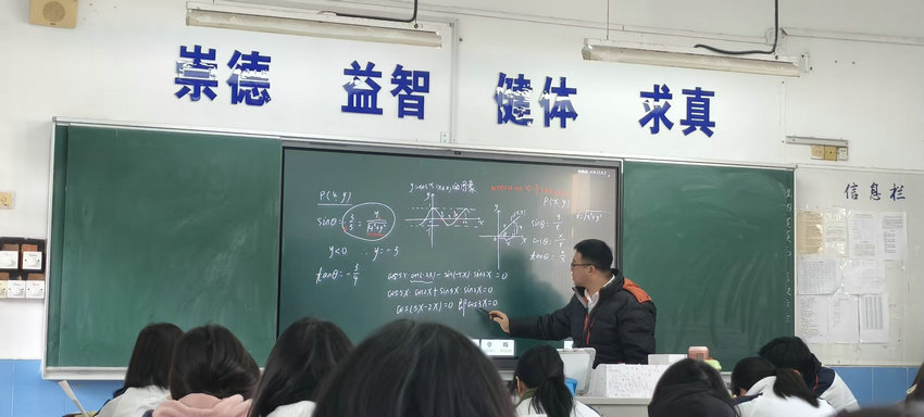 课堂上,查正运老师围绕试卷内容展开讲解,针对学生答题中出现的问题,结合三角函数等知识点进行细致剖析,通过板书推演、例题讲解等方式,清晰梳理解题思路与方法,同时关注学生的课堂反馈,及时与学生互动交流,课堂氛围扎实高效。