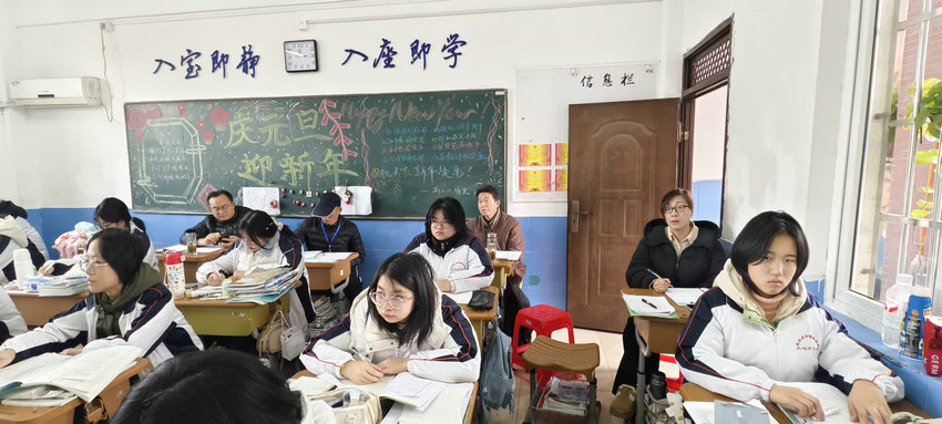 12月29日下午第二节课,我校高中部开展推门听课活动。肖清克副校长,国际部王银钗主任,高中部江生友主任、徐海宏主任、朱炎炎主任走进高二(6)班教室,深入课堂一线,听评数学组查正运老师的试卷讲解课。