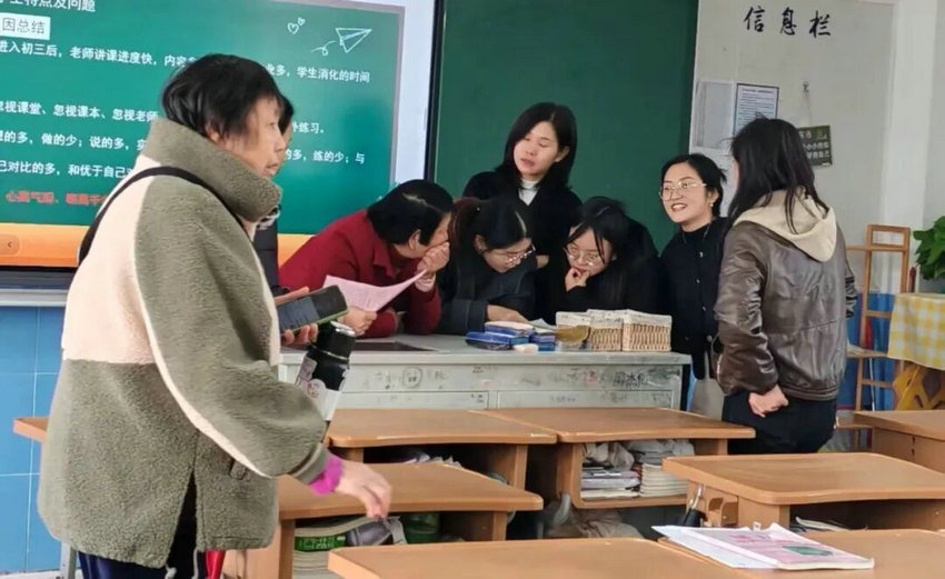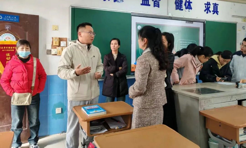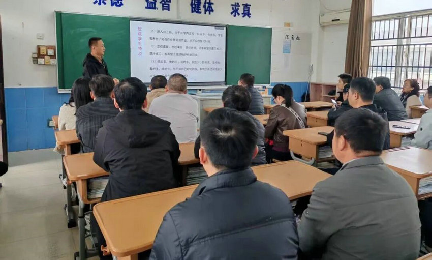 主题报告结束后,各班班主任牵头开展班级交流。明亮的教室里,班主任结合班级实际,从分析学情、班级管理、中考备考计划等方面与家长深入沟通,分享孩子们在学习、生活中的亮点与进步,也客观指出需要共同关注的问题。
