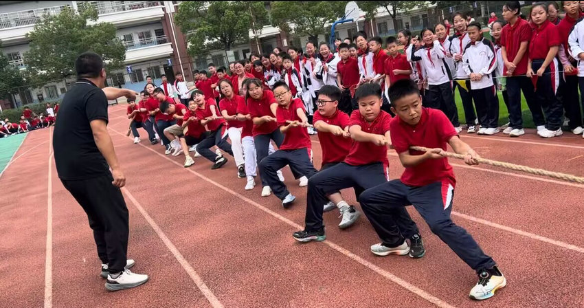 下午,在小学部操场体育组教师有序组织了六年级拔河比赛。这是此次体育节的第一项比赛活动,现场气氛热烈,加油声此起彼伏。从小组赛到决赛,各队伍秉持“友谊第一、比赛第二”的精神,既有势均力敌的胶着对抗,也有快速决胜的精彩瞬间,尤其是决赛中607班与603班的对决,双方僵持近1分钟,最终607班成功夺冠,603班、604班分获亚军与季军。