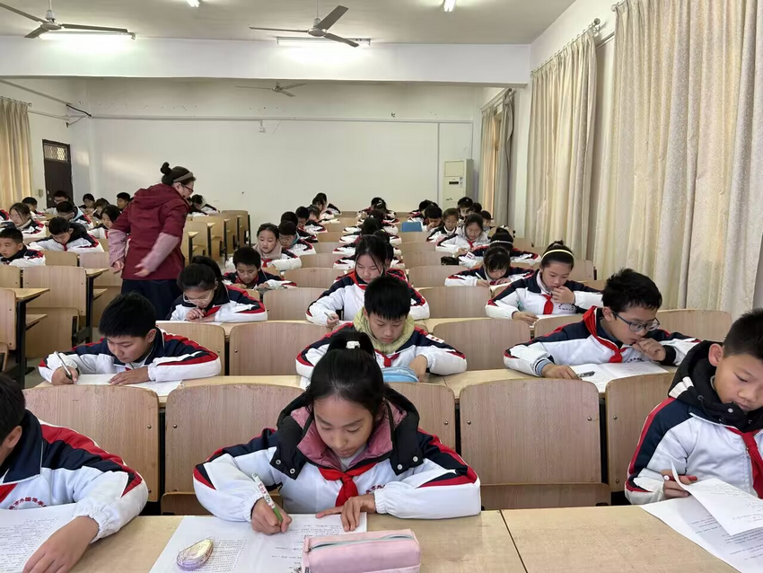 题目聚焦民间故事中的经典情节、人物形象与文化内涵,既有对故事细节的精准考查,也有对阅读感悟的灵活设问,全面检验学生的阅读。活动现场,选手们坐姿端正、神情专注,时而低头沉思,时而奋笔疾书,将平日里的阅读沉淀转化为笔下的精彩答案。短短一节课的时间里,他们以认真的态度、扎实的功底展现着五年级学子的风采,用文字传递对民间故事的热爱。