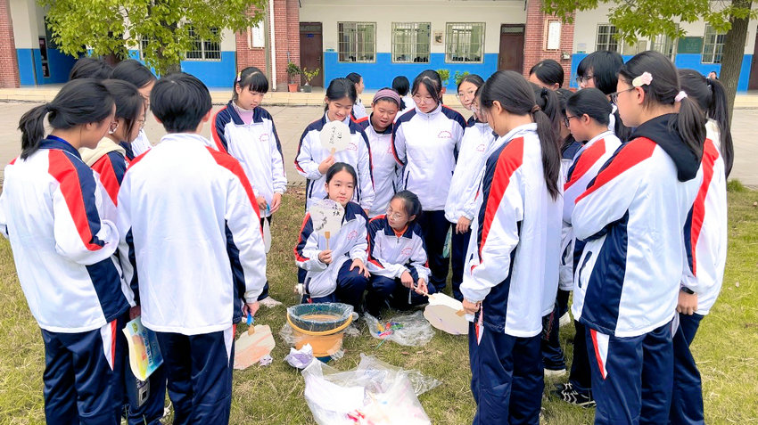 创作过程中,老师穿梭在学生之间,耐心指导大家处理细节问题,解答绘画时遇到的困惑。同学们相互交流创作思路,分享绘画心得,活动室里洋溢着浓厚的艺术氛围。经过一番精心创作,一把把精美别致的漆扇新鲜“出炉”,同学们拿着自己的作品爱不释手,脸上满是自豪与喜悦。