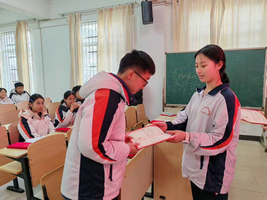 在热烈的掌声中,九年级同学为新一届学生会干部依次颁发聘书,接过聘书的同学们身姿挺拔、眼神坚定,这份薄薄的聘书,承载的是学校的信任与同学的期盼。