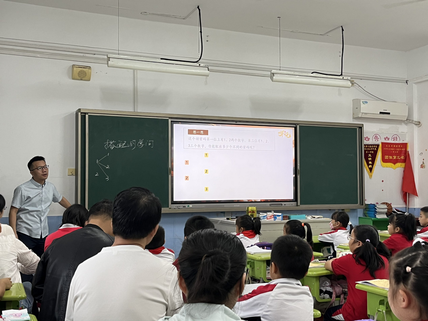 为提高教师整体教学能力,加强师资队伍建设,2025年9月24日上午,数学组方龙兴老师执教的三年级《搭配中的学问》一课拉开了名师能手示范课活动的序幕,数学组全体教师及部分其他学科教师参与听课。