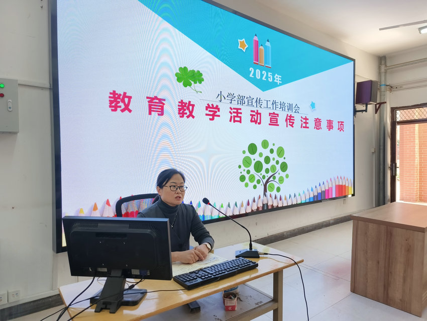 为进一步提升小学部宣传工作人员的专业素养与业务能力,尤其对摄像摄影方面专业技术的了解和掌握,10月24日小学部召开了2025-2026 学年度宣传工作培训会,会议由德育处主任许德高支持。