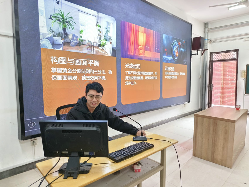 随后宣扬老师以《视频拍摄全攻略——从基础到实战》为主题,就摄影摄像基础知识做专题讲座,以浅显易懂的语言讲述摄影用光、构图、运镜等方面注意事项,帮助老师们学会使用手机进行高质量拍摄。