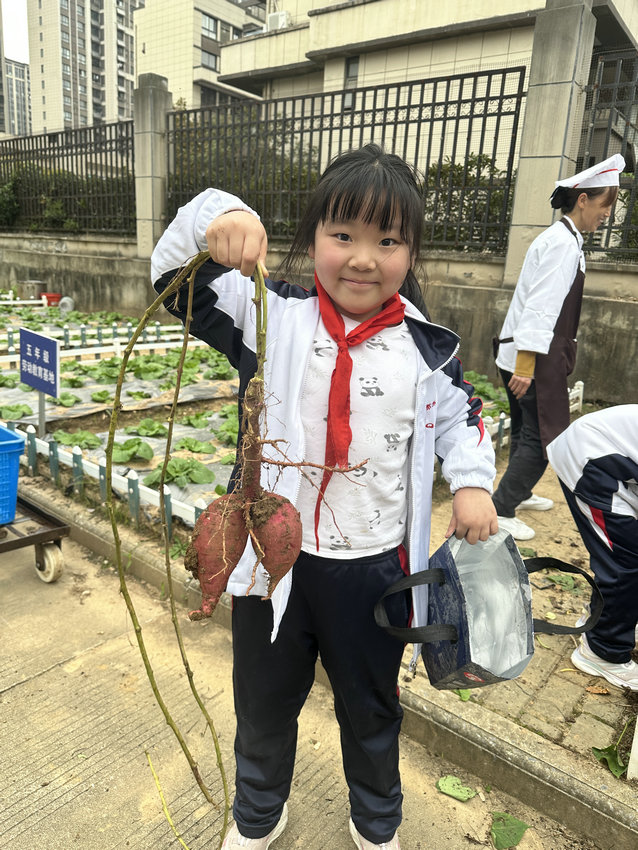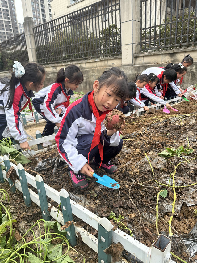 11月5日下午,安庆市外国语学校小学部学生走进校劳动教育基地,在专业老师的指导下开展挖红薯劳动实践活动。
