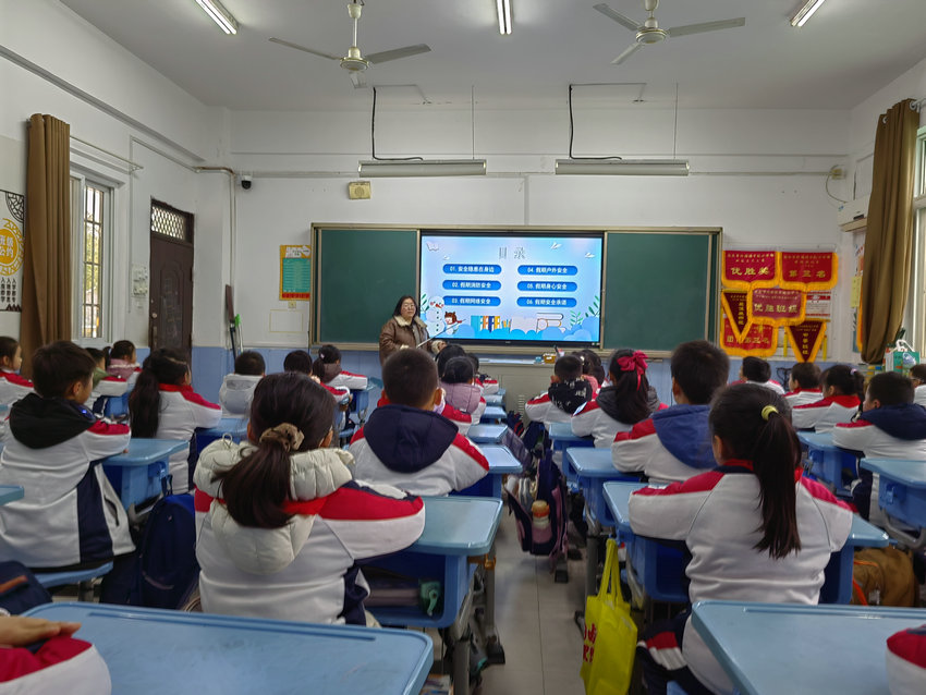 班会上,班主任们通过动画、图片、提问等方式,向学生讲解了交通安全、居家安全、饮食安全、网络安全等重点知识,提醒大家遵守交通规则、不玩火碰电、不给陌生人开门、远离 “三无” 食品,不燃放烟花爆竹等。并通过师生互动、情景设计等方式,让学生们在轻松氛围中掌握了应急处理方法。最后,同学们齐读安全倡议书,承诺牢记安全知识。