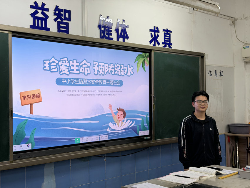 为进一步加强校园安全教育,严防溺水事故发生,切实增强全体学生的安全防范意识和自我保护能力,2026年4月13日,初中部东区召开防溺水主题班会,为学生们送上一堂堂生动且深刻的生命安全教育课。