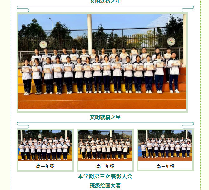 为树立先进典型,营造积极向上的校园氛围,我校高中部定期开展学生表彰活动。我们深挖身边榜样,以 “学习之星”“进步之星”“文明之星” 等荣誉为引领,让优秀不再是偶然,而是成为根植于心的习惯,激励着每一位学子见贤思齐、追光而行。