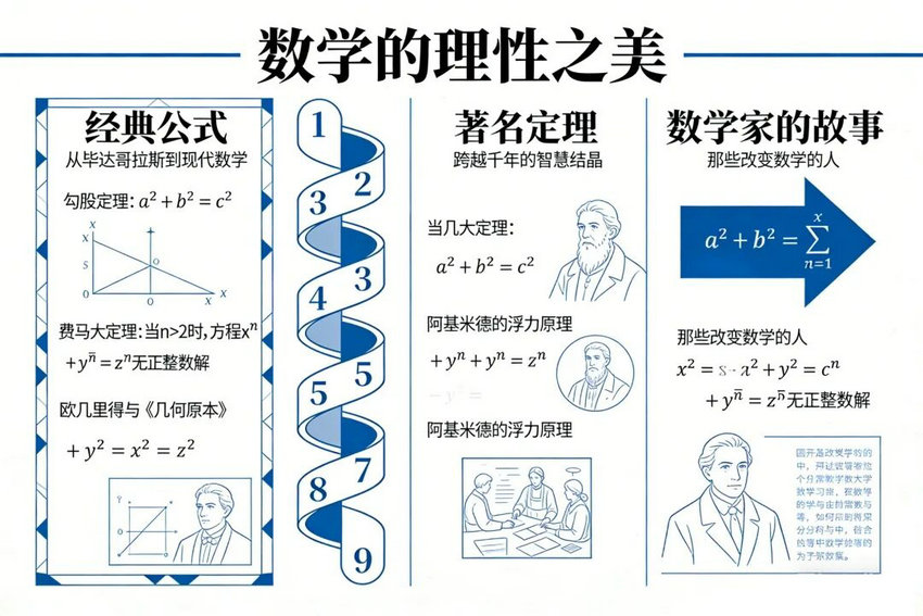 数学不只是公式与计算,更是一种思维的艺术,藏着宇宙运行的密码。这个寒假,以数学文化为主题制作手抄报,让公式、定理、数学家故事在纸上 “活” 起来,感受数学的理性之美。