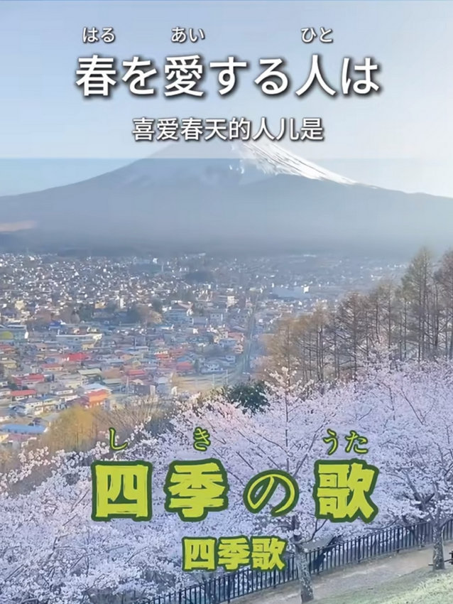 3、日语歌曲学唱选择一首简单的日语儿歌或流行歌曲(如《四季の歌》),标注歌词假名和中文翻译,学会整首歌曲,开学后进行班级小展示。