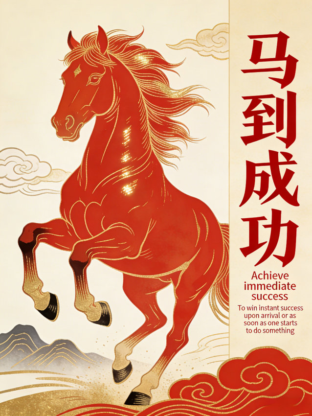 用英文介绍一个与马有关的成语,并配一幅马图。