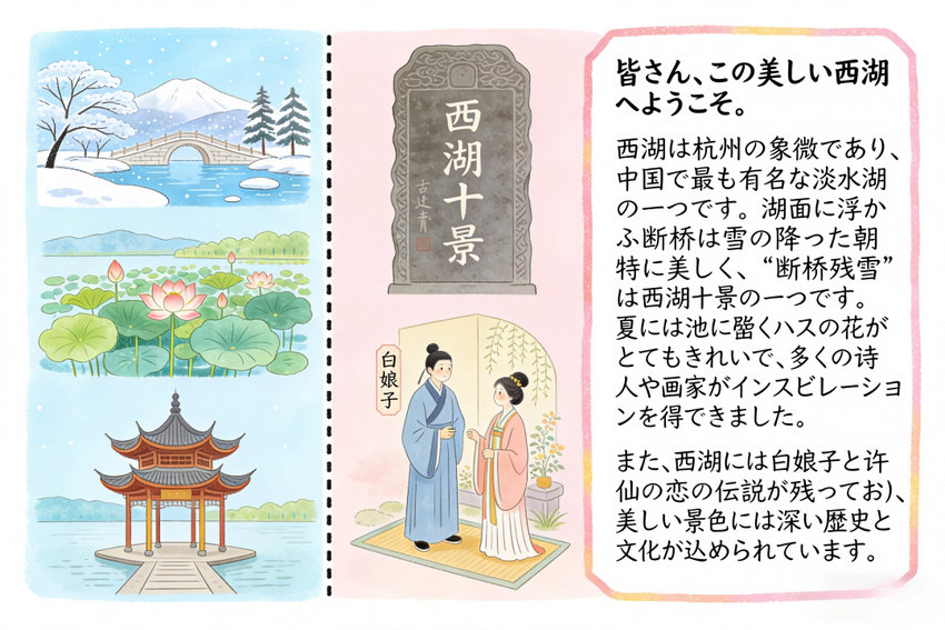 手抄报:选取家乡的一个著名景点,用日语撰写300字左右的导游词,并配图要求包含景点特色、历史背景等信息。