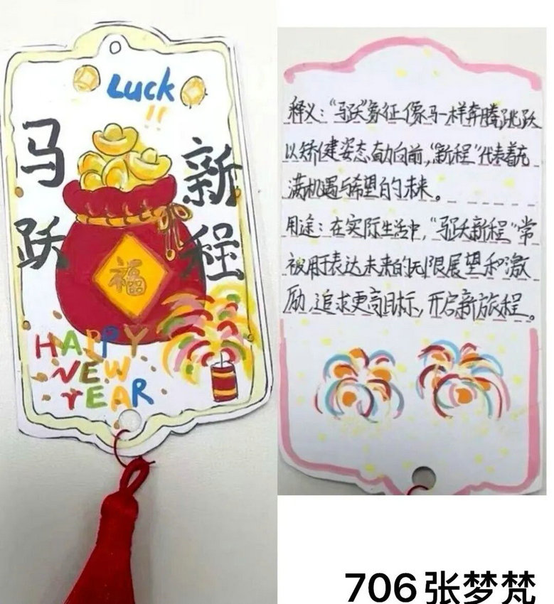马踏春泥,新叶初绽;春花渐盛,香气浮动。学习的边界,正于时光中悄然拓展。寒假这一段留白时光,可喜读卷卷书,亦可巧明层层理。时光不语,此间种种收获,一切皆可源于“巧”字。从巧创马年书签到巧制数学节LOGO ,从年货采购到用巧写英文诗歌。更不要说文物模型的精巧制作、生活中的巧手参与……同学们挑选自己感兴趣的任务,在探索与实践中感受到更丰富的生活、触摸到更广阔的世界!