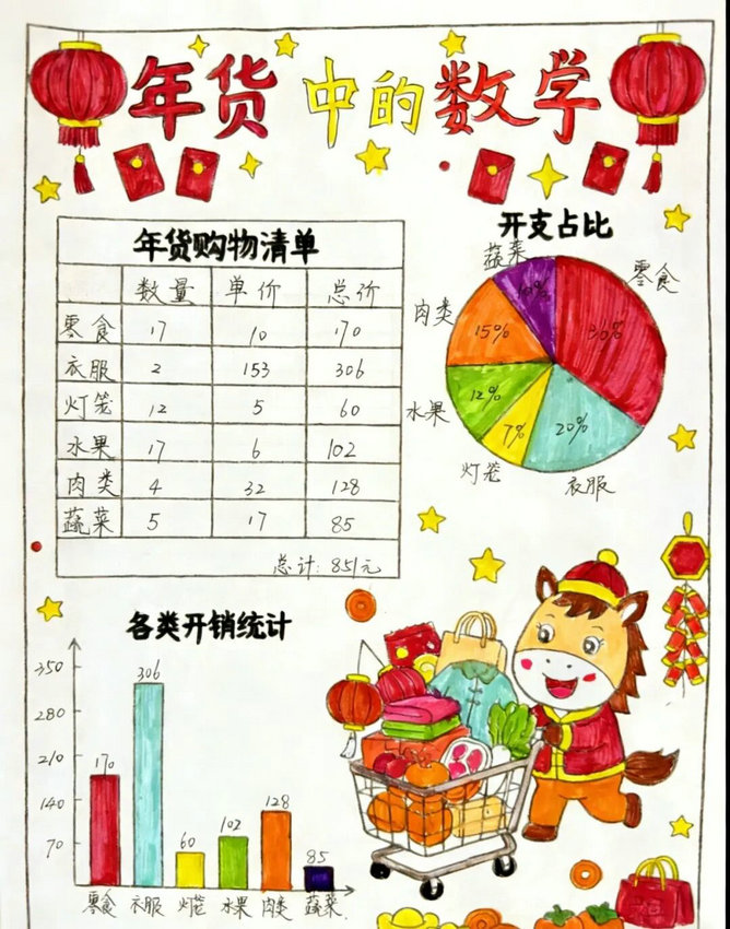 生活数学生活即课堂,数学藏日常。走进年货市集,在询价、比价、记账、统计中活用数学知识,用数据记录年味,用思考解锁实践。于烟火气息里感受数学魅力,提升应用能力与理性思维。