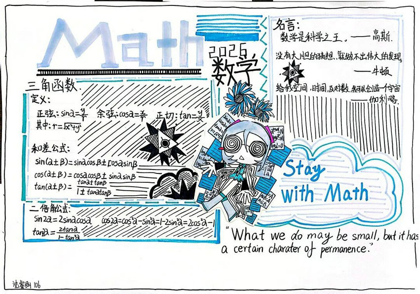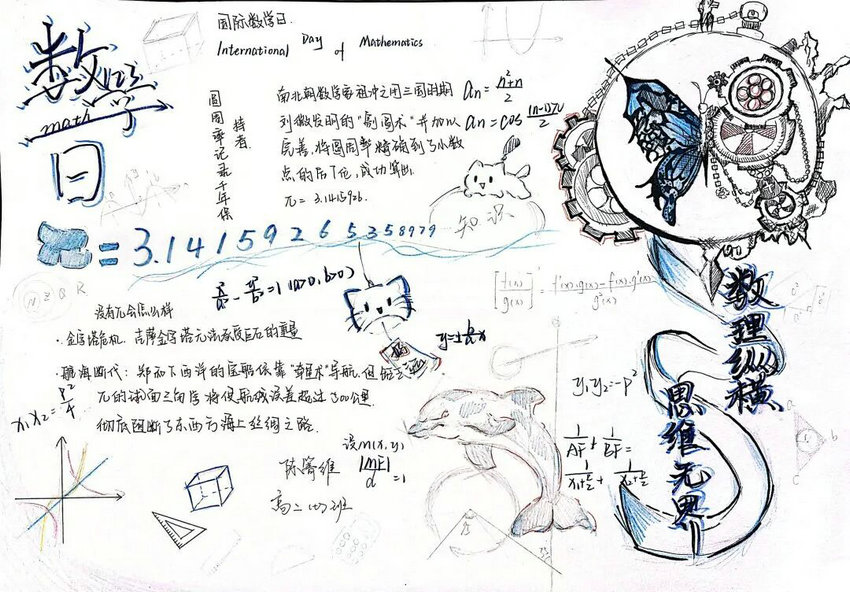 这个寒假,数学不再是枯燥的公式与题海战术。同学们让数学走出课本,以数学手抄报为载体,将函数图像、几何定理、概率模型等核心知识融入创意版面,用色彩与插画串联公式推导与生活应用,让抽象的数学符号变得生动可感。