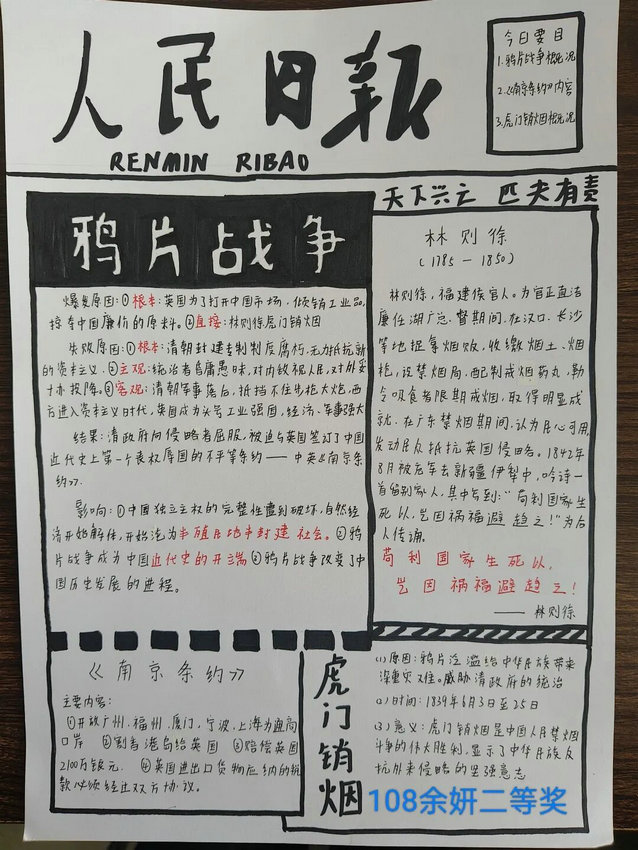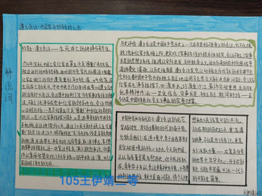 以史为镜,可知兴衰;以史为灯,可明方向。在本次历史特色作业展中,同学们精心制作了历史主题手抄报,通过图文并茂的形式生动展现了历史的厚重与辉煌。他们将家国情怀融入日常学习,在回望历史中汲取奋进力量,充分展现了当代学子对历史的深刻理解与真挚热爱。