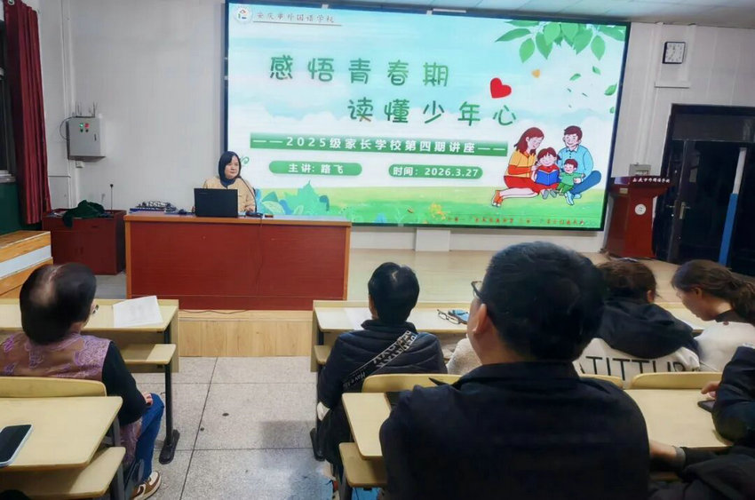 青春期是青少年身心发展的关键转折期,也是家庭教育的重要攻坚期。为帮助家长精准把握青春期孩子的成长规律,破解亲子沟通难题,搭建科学的家庭教育桥梁,我校于3月27日19:00在一楼报告厅成功举办2025级家长学校第四期专题讲座,主题为“感悟青春期,读懂少年心”。本次讲座由路飞老师主讲,2025级家长学校全体学员及七年级各班家长代表齐聚现场,共探青春期育儿之道。