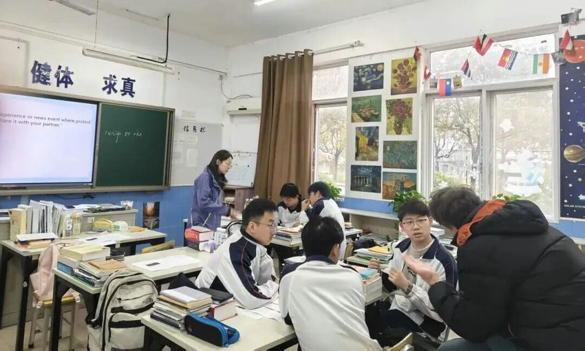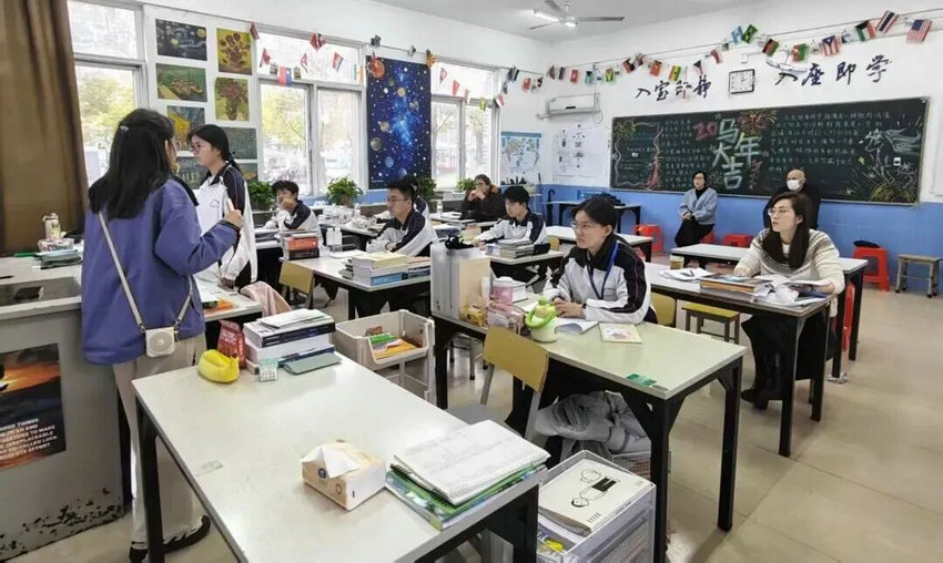 课堂观摩环节,Gary 先生走进不同年级的课堂,先后认真听了姚老师围绕《Black Diggers》展开的 personal response 专题讲解,以及彭老师关于 protest 主题的课堂教学。在听课过程中,他细致观察课堂中的师生互动模式、教学方法的实际落地效果,并不时记录课堂细节,关注学生在课堂中的反应与参与状态。他对两位教师贴合学生学情进行教学设计、高效组织课堂教学的能力给予充分肯定,认为课堂既扎实又有层次,体现出教师扎实的教学功底和对学生的深刻理解。