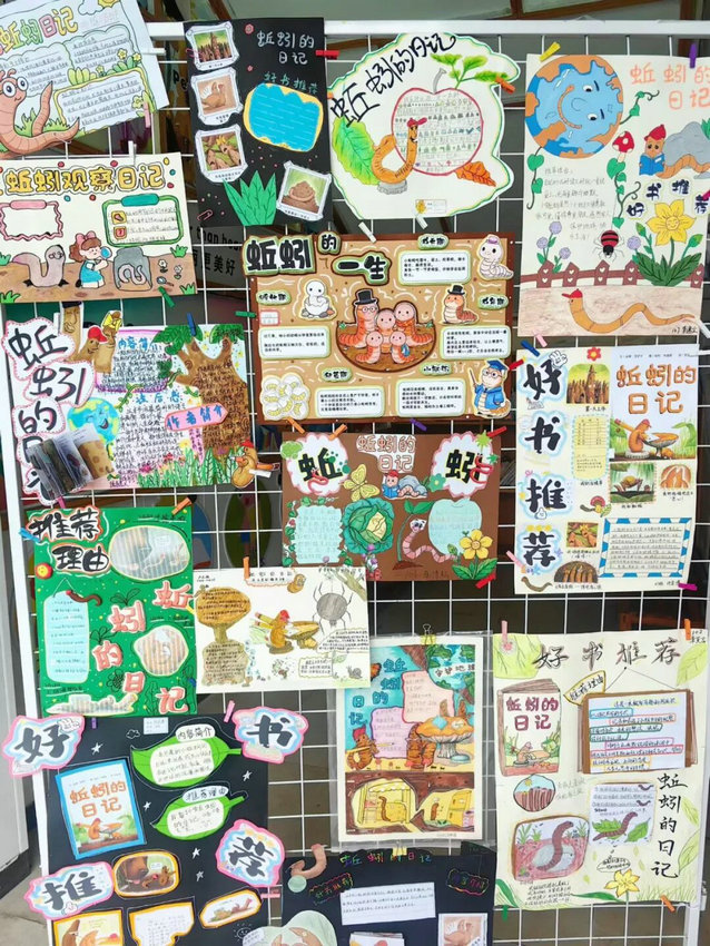 一年级以绘本《蚯蚓的日记》为主题,开启了一场妙趣横生的读写+自然探索之旅。孩子们跟着蚯蚓的视角读趣味日记,开展可爱的日记模仿秀,亲手写下专属《我的日记》;精心制作主题手抄报,用色彩勾勒阅读收获。大家来到户外亲近自然,实地寻找、观察蚯蚓,在玩中学、读中悟,最后精彩亮相“蚯蚓”绘本展,让童真与书香肆意飞扬。